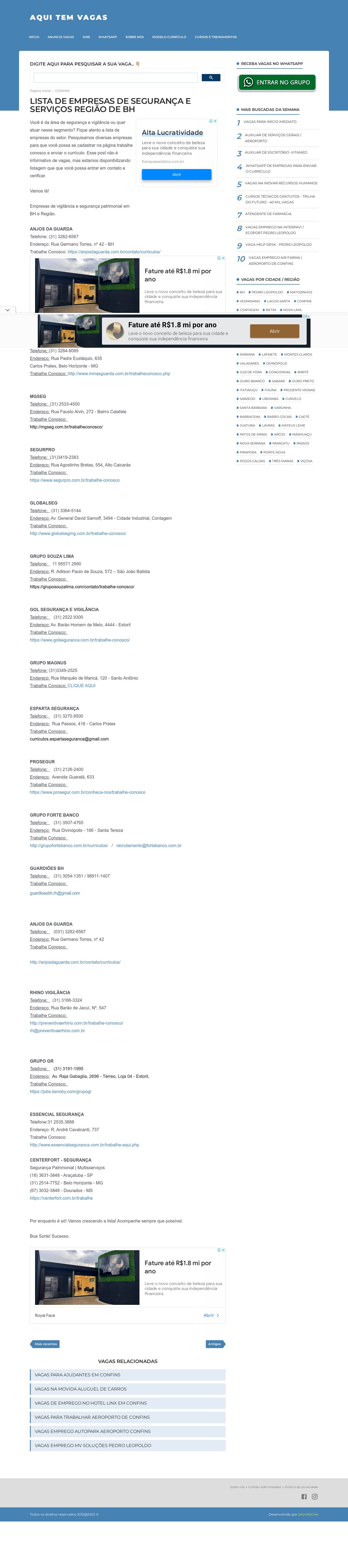 LISTA DE EMPRESAS DE SEGURANÇA E SERVIÇOS REGIÃO DE BH - AQUI TEM VAGAS